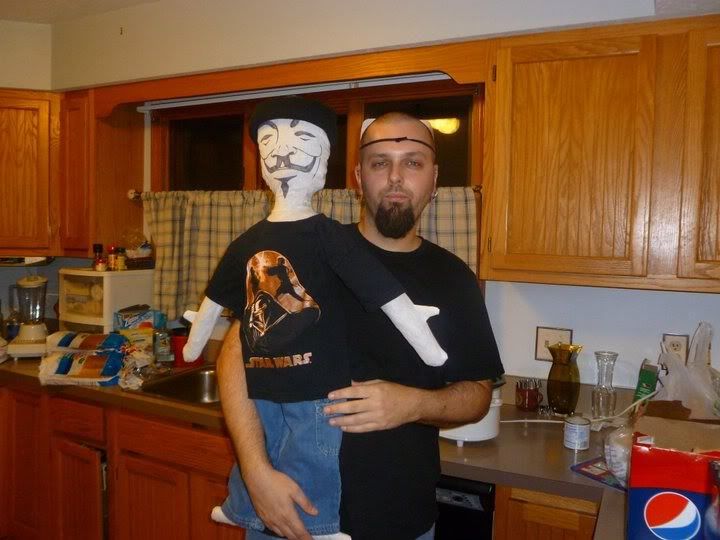 This year's effigy came to the party in jeans and a Star Wars T-shirt.