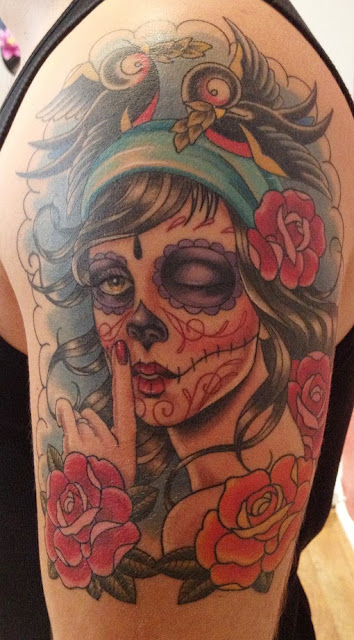 Here's two from this week and a healed picture of a lady I did about a month ago. The dagger is originally from an old flash set, but I've redrawn it my way. The dreamcatcher looks a little wonky, it has some healed parts, shades and outlines and colours are fresh, so the skin is swollen in some places and others not etc.