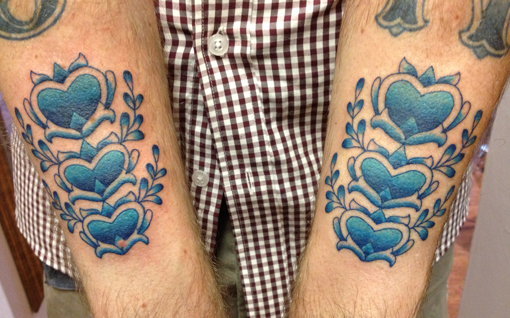 Did these three hearts today, a different kind of job. All in blue. When healed it will be the same colour as the tattoos that peek in the picture on top. Really want to see this one healed.