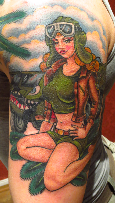 The army pinup I finished yesterday. That was a fun project. The eye is a little bloody and it's a little distorted since it's wrapping around the arm a little...