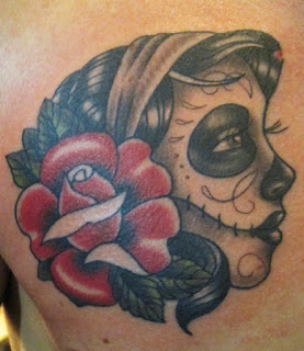 Here's a couple of the tattoos I did at the convention in Milan, the lady in profile and the little branch of flowers.
